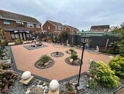 In Huntingdon, the Butler’s team transformed a traditional lawn into a sleek resin-bound garden design. The upgrade replaced high-maintenance grass with a smooth, durable surface, accented by elegant circular features and dark edging. This project not only adds a modern, low-maintenance finish but also creates a striking outdoor space that’s practical, stylish, and built to last.